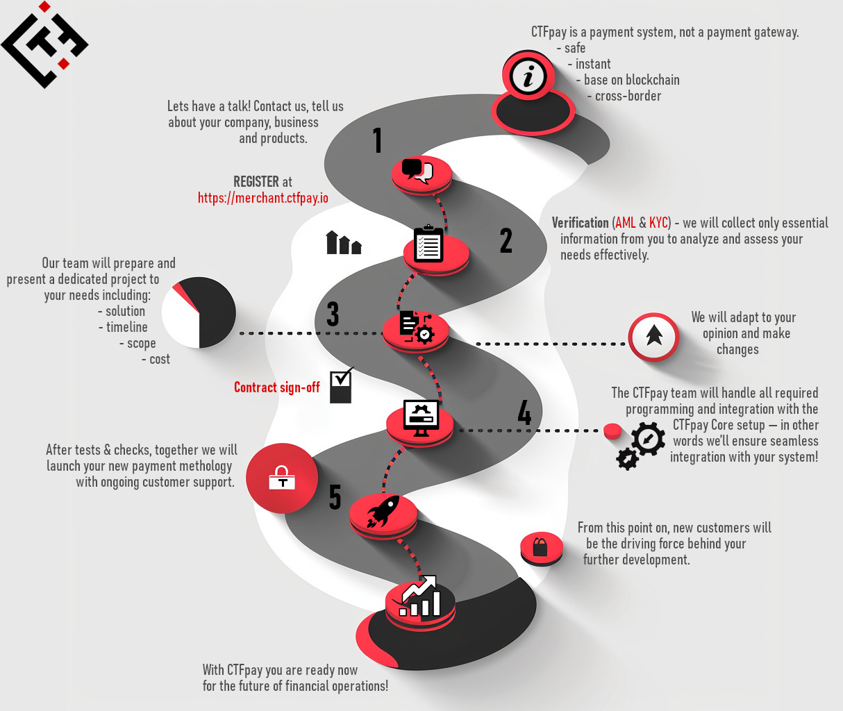 After free registration you can obtain detailed information how to start cooperation with CTFpay as merchant.